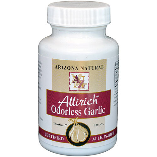 Allirich Odorless Garlic is the original, allicin-rich odorless garlic supplement. Arizona Natural's exclusive deodorization process buffers the odorous sulfides while maintaining allicin's activity. Allicin is a key component of garlic and responsible for many of it's health benefits. Garlic may be useful in the control of blood cholesterol levels. Allirich odorless garlic powder is Certified Allicin-Rich by HPLC testing.