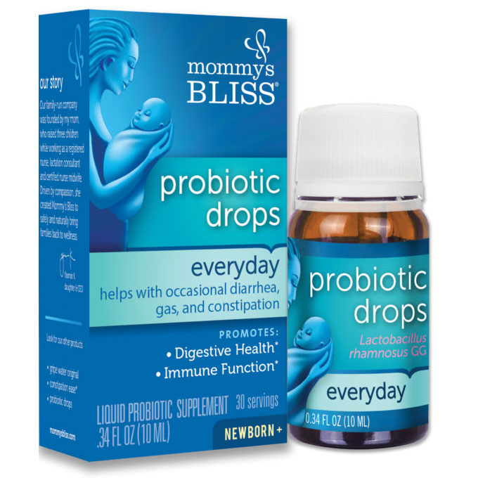 Mommy's Bliss Probiotic Drops promote digestive health & support immune function. It may also help with occasional gas, diarrhea & constipation.