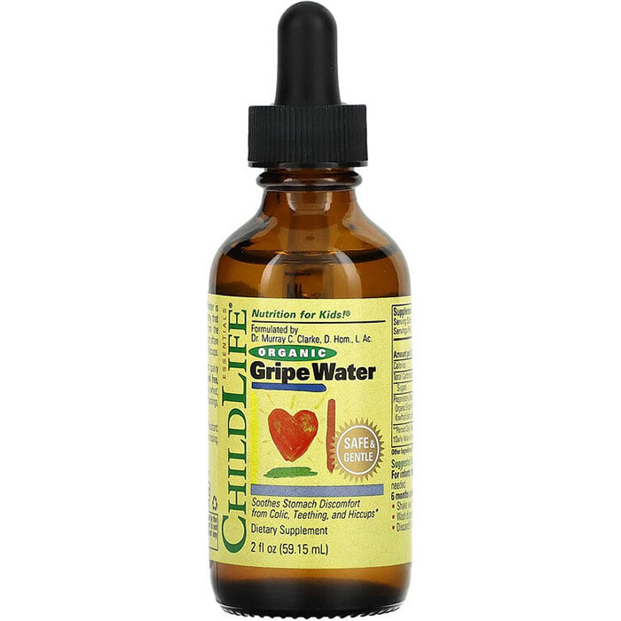 ChildLife Essentials Organic Gripe Water for babies is a liquid herbal supplement that contains a combination of soothing and calming herbs used to comfort infants experiencing bloating and stomach discomfort often associated with occasional hiccups.