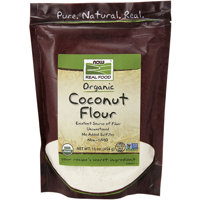 With Now Real Food® Organic Coconut Flour you can say goodbye to overly processed, grain-based flours and replace them with a wholesome, healthy, flavorful flour that's free of gluten and other common allergens. Our Organic Coconut Flour is dried, defatted coconut meat and ground into a fine powder. It's also an excellent source of fiber.