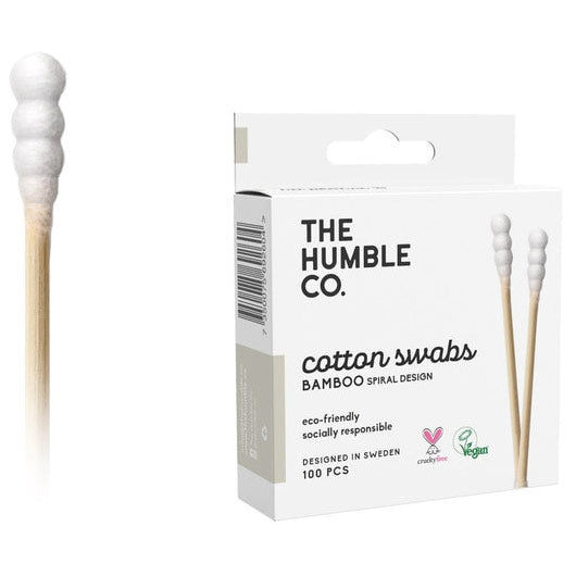 Cotton Swabs - Spiral Tip - White, 100 pcs, The Humble Co.