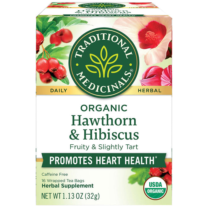 Organic Hawthorn & Hibiscus Tea, 16 Tea Bags, Traditional Medicinals Teas