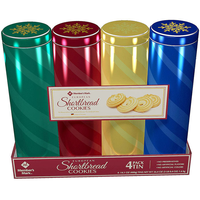 Member's Mark European Shortbread Cookies in Collector Tin Gift Pack, 14.1 oz x 4 Pack