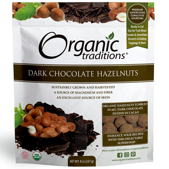 Organic Dark Chocolate Covered Hazelnuts, Value Size, 8 oz (227 g), Organic Traditions