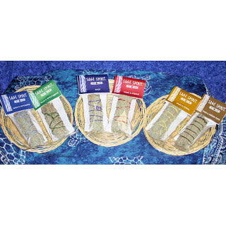 Sage Spirit Smudge Wands are made from a combination of sage, cedar sweetgrass, lavender and copal. Wrapped with 100% cotton string, each wand is considered a sacred herb used for centuries by Native Americans in the smudging ceremony. "Smudging" is the name given to the burning of these sacred herbs for the purpose of cleansing and sending out prayers. Today, people are smudging to receive the benefits known to our Native American brothers and sisters for generations.